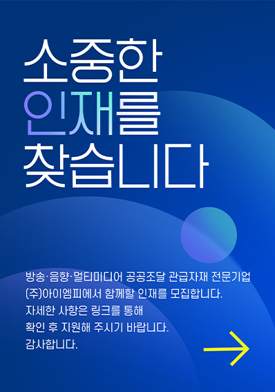 주식회사 아이엠피는 공공조달시장에 특화된 음향ㆍ영상 솔루션을 제공합니다.